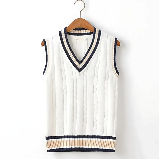 Ärmelloser Herren Strickpullover mit V-Ausschnitt und Streifendetails