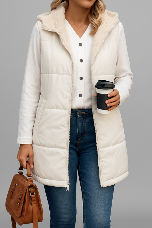Lange gesteppte Damen Weste mit Kapuze | Übergangsjacke