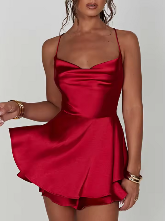 Abendkleid für Damen mit dünnen Trägern aus Satin | Mini