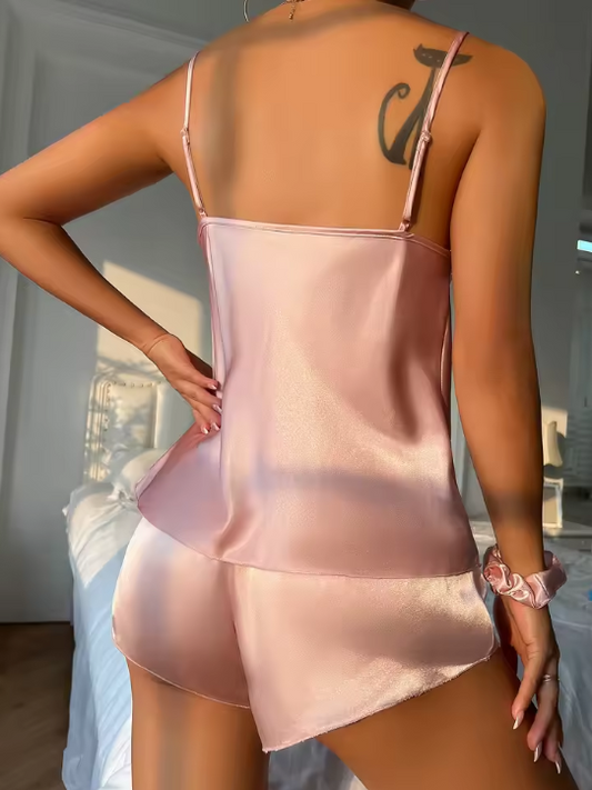 Zweiteiliges Damen-Nachtkleid aus satinartigem Material mit Hose