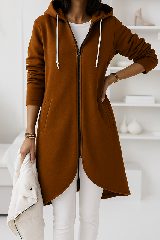 Gemütliche Damen Strickjacke mit Kapuze | Lang