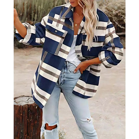 Damen lange Bluse kariert mit Knopfleiste | Herbst