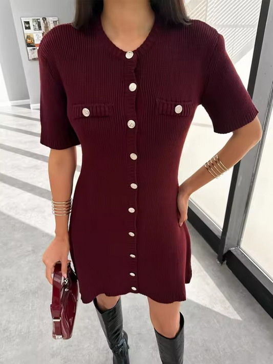 Langes Kurzärmliges Midi Kleid für Damen mit Knopfleiste