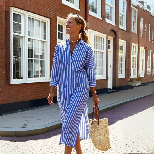 Damen Hemdblusenkleid mit Knopfleiste und Streifenmuster