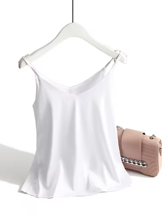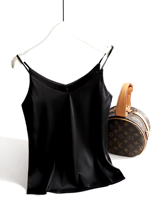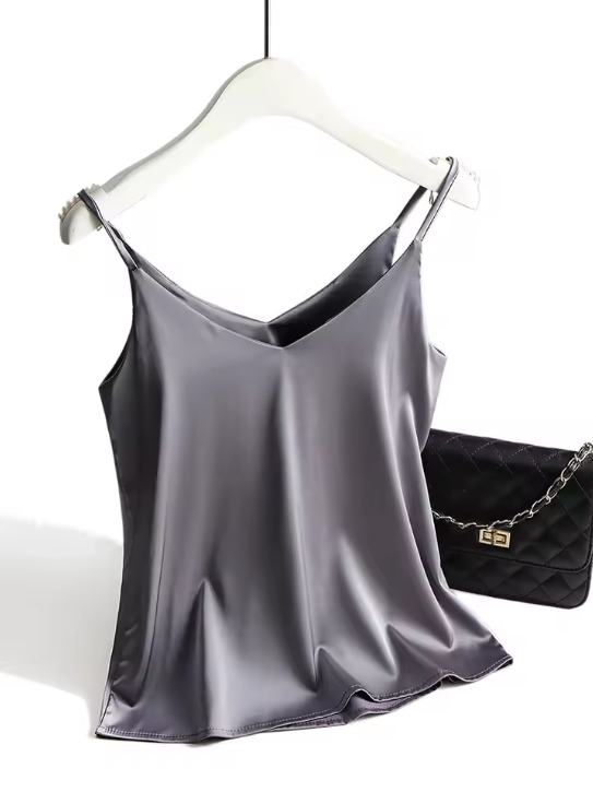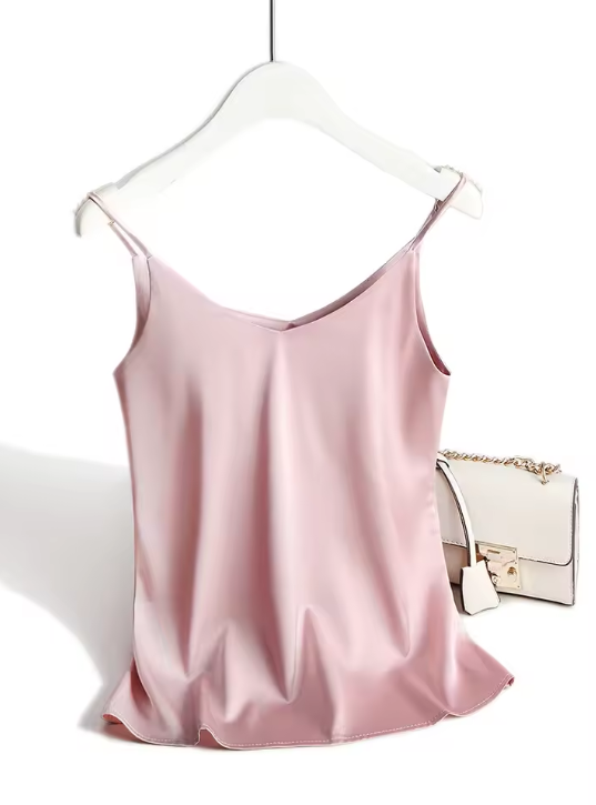 Dieses Damen-Top bietet einen lockeren Schnitt und dünne Träger für ein bequemes Tragegefühl. Der V-Ausschnitt sorgt für eine elegante Optik, während das weiche, fließende Material eine angenehme Passform bietet. Das schlichte Design ermöglicht vielseitige Kombinationen für verschiedene Anlässe.