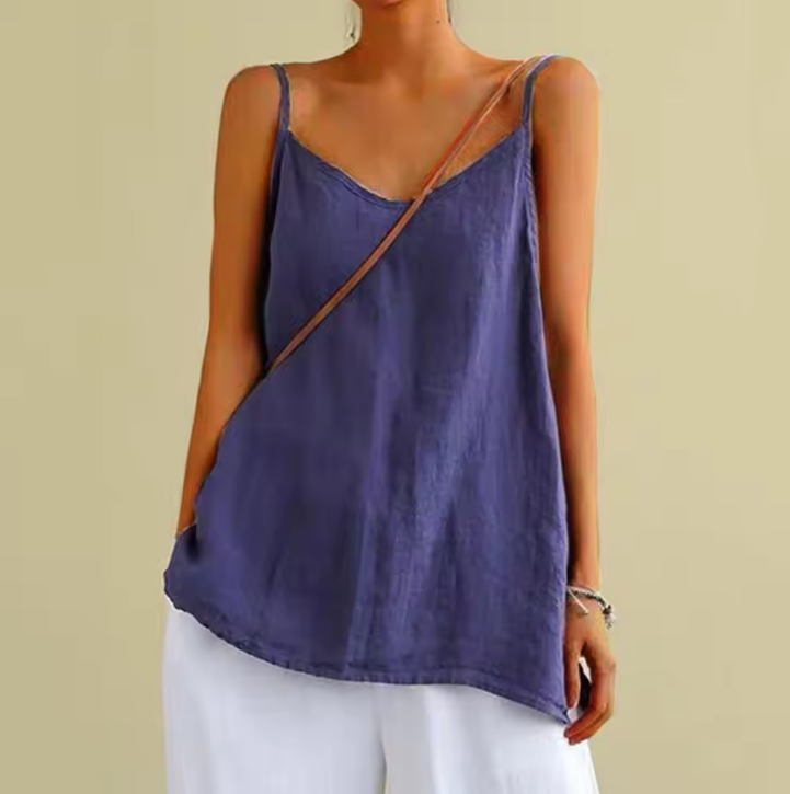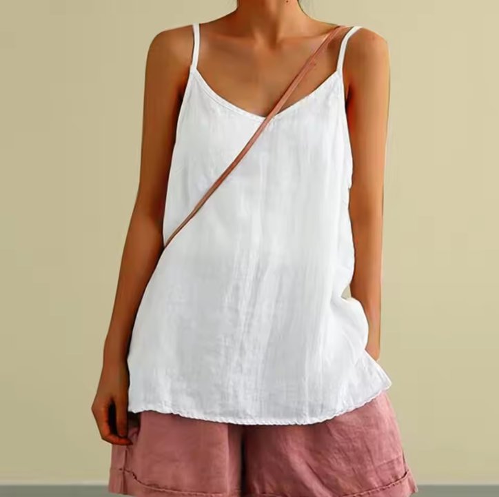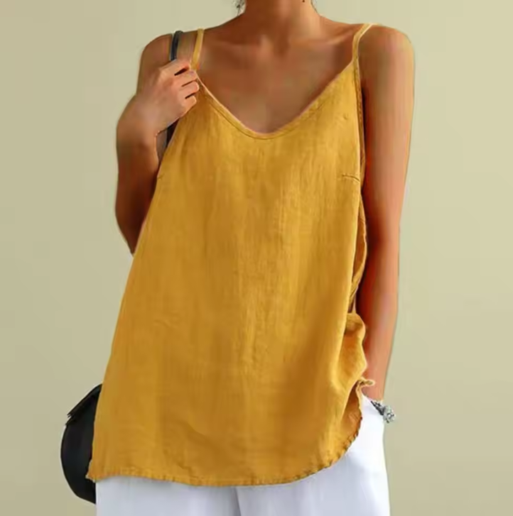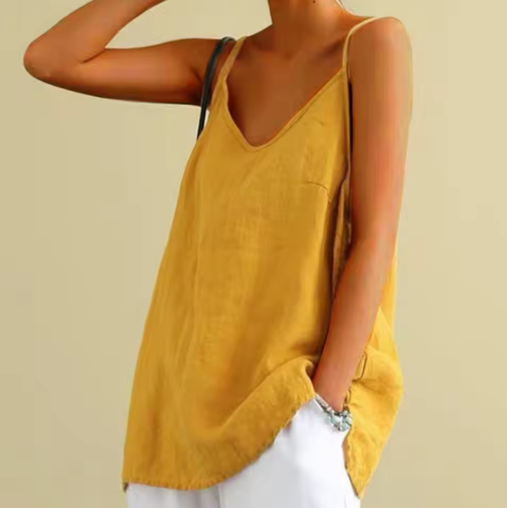 Dieses Damen-Top zeichnet sich durch dünne Träger und einen lockeren Schnitt aus. Der V-Ausschnitt sorgt für eine einfache und schlichte Optik. Das leichte Material ermöglicht einen angenehmen Tragekomfort. Das Top lässt sich vielseitig kombinieren und eignet sich für verschiedene Gelegenheiten.