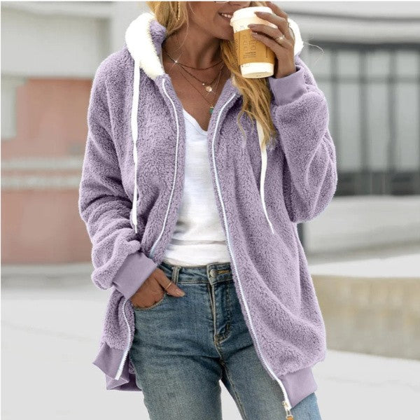 Damen Teddy-Kapuzenjacke mit Reißverschluss | Lang