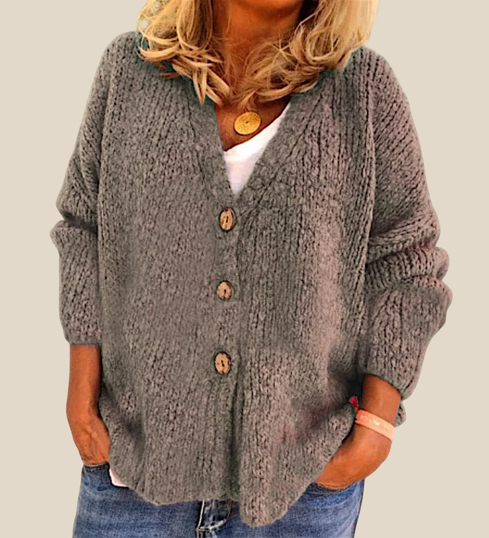 Diese Strickjacke überzeugt mit ihrem lockeren Schnitt und der angenehm weichen Struktur. Die Knopfleiste und die leicht überschnittenen Schultern sorgen für eine entspannte Passform, die vielseitig kombinierbar ist. Ideal für den Alltag, wenn Komfort und ein gepflegtes Erscheinungsbild gefragt sind.