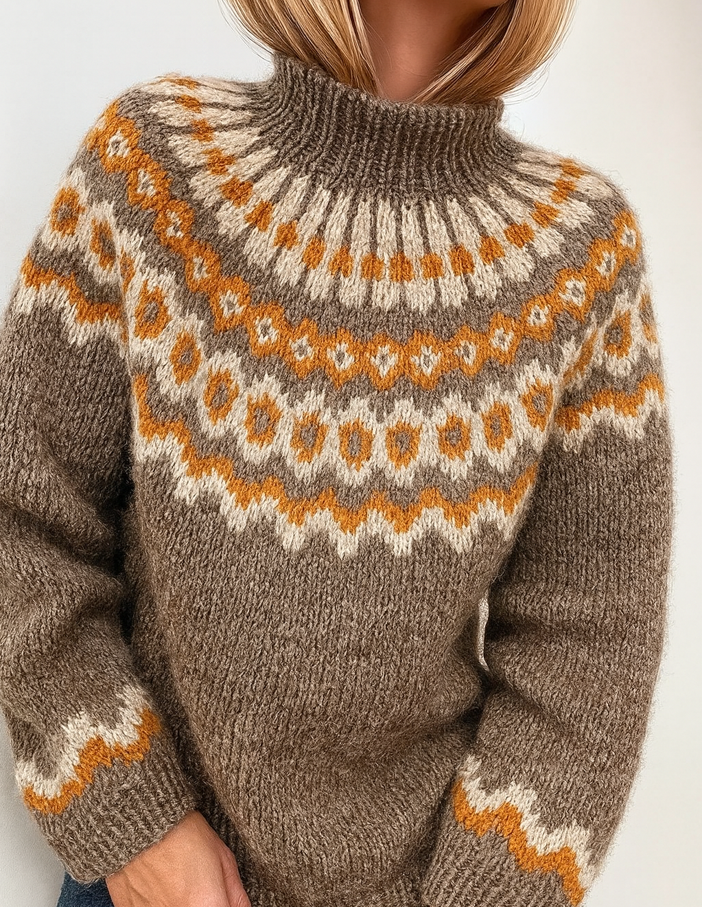 Damen Strickpullover mit Norweger Muster | Rollkragen