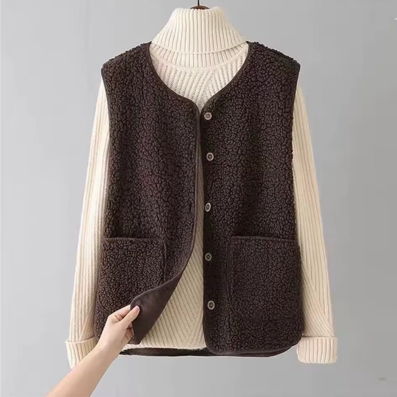 Damen Weste mit Knopfleiste und Taschen aus strukturiertem Material